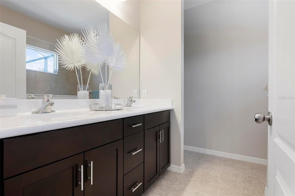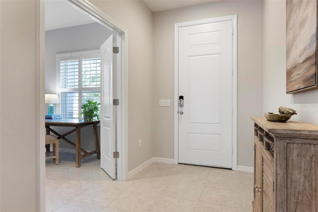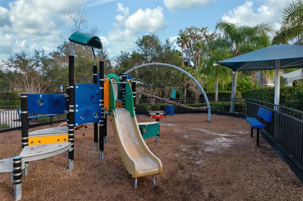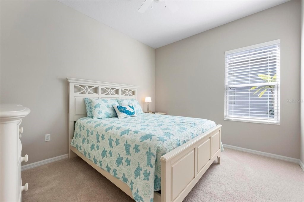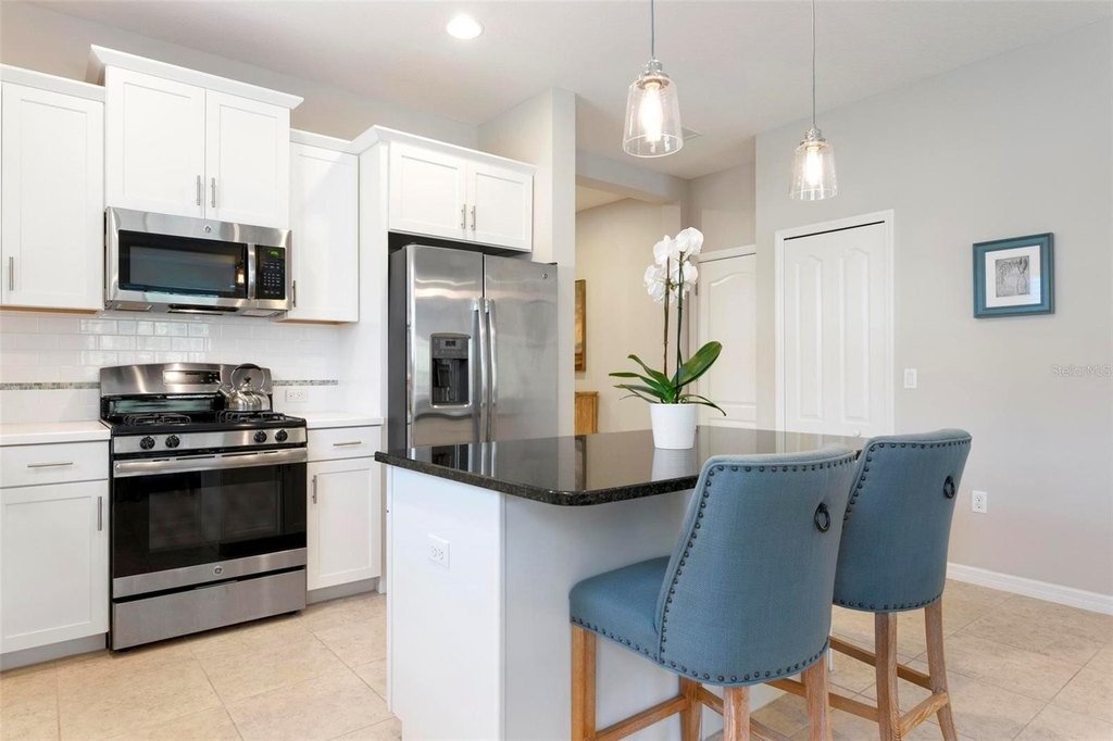 Immaculate and move-in ready! Stunning POOL home that lives LIKE NEW! Built by award-winning Neal Communities in 2016, this beautifully maintained 3-bedroom plus DEN residence is nestled within the gated community of Woodbrook. Welcoming covered front entry leads into the spacious foyer. Bright, open great room layout with neutral and timeless design throughout; tray ceiling, recessed lighting, and Hunter Douglas window treatments. Sliding doors open to an extended screened lanai with bronze enclosure, heated inground pool, stone paver deck, and covered seating area with ceiling fan and gas hook-up, perfect for effortless indoor-outdoor living. Inviting kitchen features shaker-style cabinetry with crown molding, dual granite countertops, tile backsplash, GE stainless steel appliances with gas cooking, center island with counter-height seating, and a spacious walk-in pantry. Serene primary suite offers a large walk-in closet and ensuite bath with tiled walk-in shower and dual vanities. Two additional bedrooms share a well-appointed full bath. A versatile den with French doors provides the ideal home office, media room, or playroom. Additional highlights include a large indoor laundry room with GE washer and dryer, multiple storage closets, and a two-car garage with epoxy coating on floor. Furnishings available under separate contract. Enhanced landscaping and a wider right side yard give you privacy. Palm Leaf Court is a small circle of 8 homes with landscaped center. Residents of Woodbrook enjoy a resort-style heated pool and spa, cabana, outdoor grill area, playground, park, and scenic walking trails. Conveniently located near UTC shopping, fine dining, cultural attractions, downtown Sarasota and Bradenton, pristine Gulf beaches, top-rated golf courses, and Sarasota-Bradenton International Airport. Comfort and style – all just minutes from everything you need.